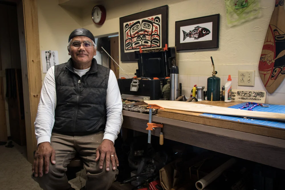 Wayne Price, master carver, , travels frequently between his home in Alaska and the Yukon, working with communities to facilitate their healing journeys through traditional Indigenous art forms.