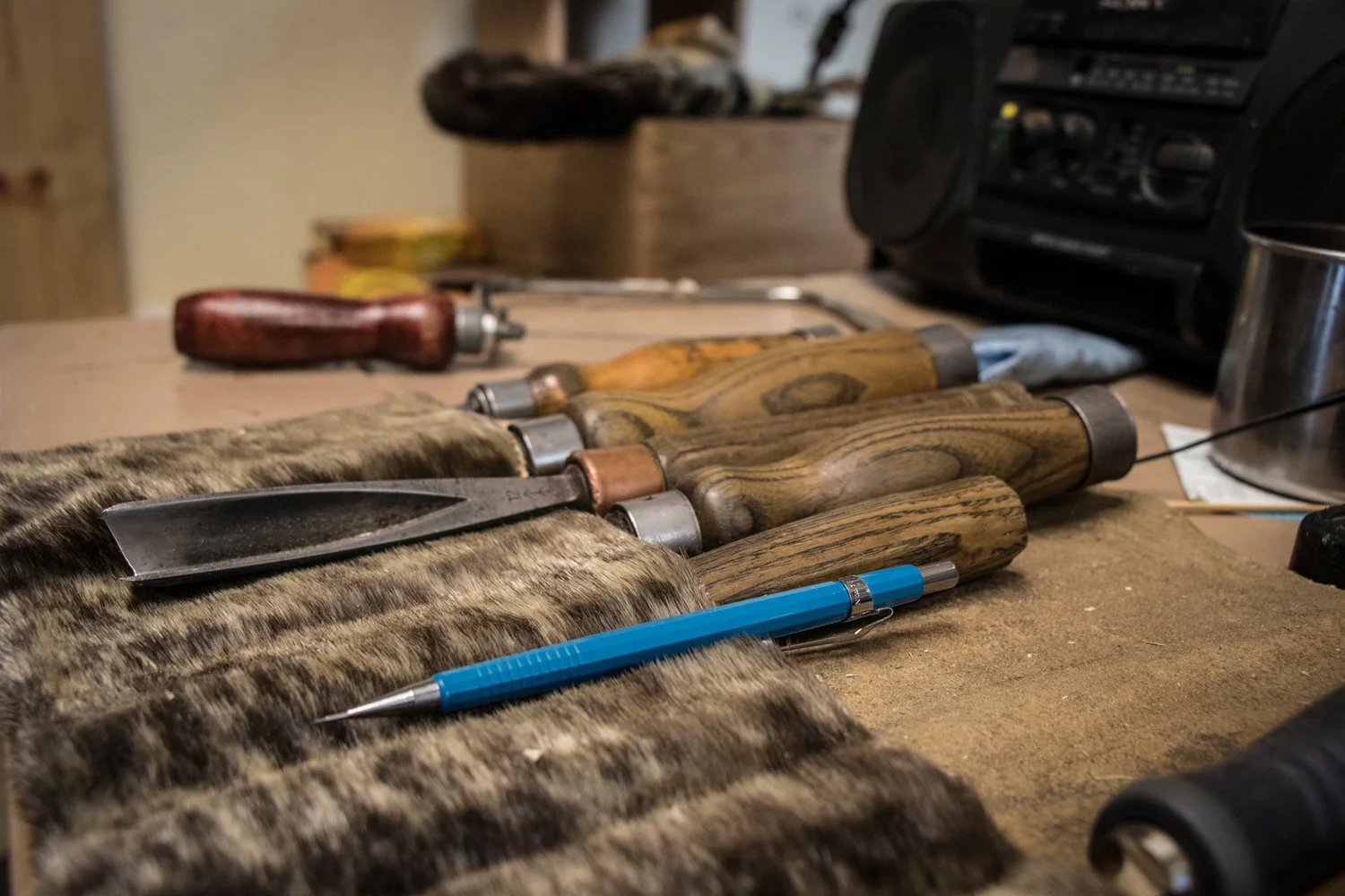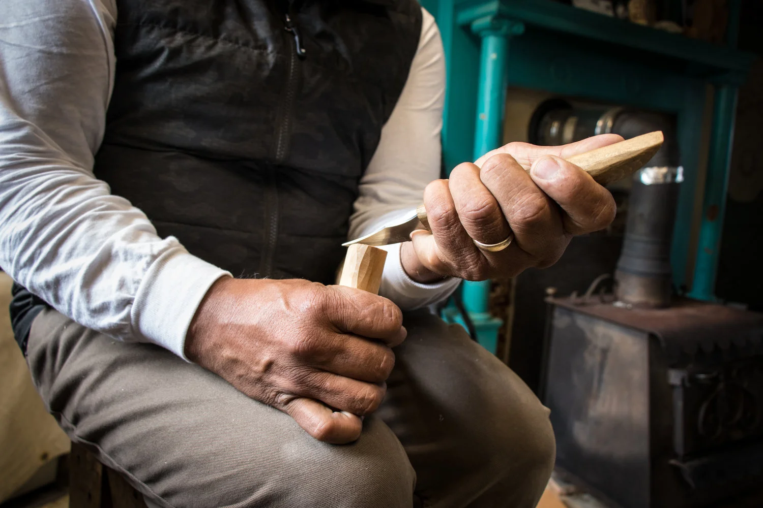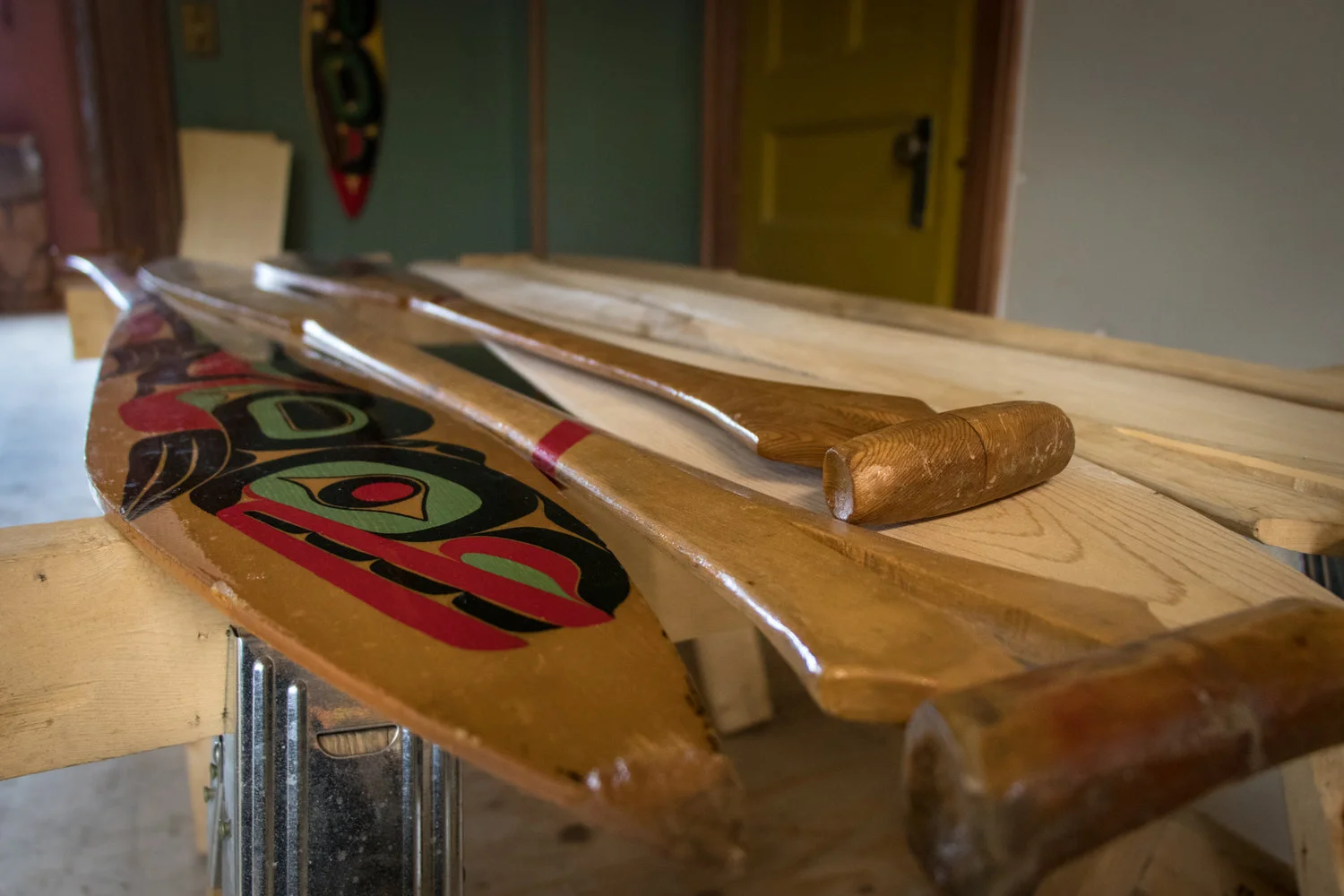 Once the paddles are carved, they are then decorated in traditional paintings and then preserved with varnish.